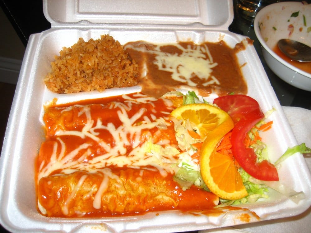 Served with rice and beans, lettuce, pico de gallo, salad and guacamole, red sauce or green sauce.