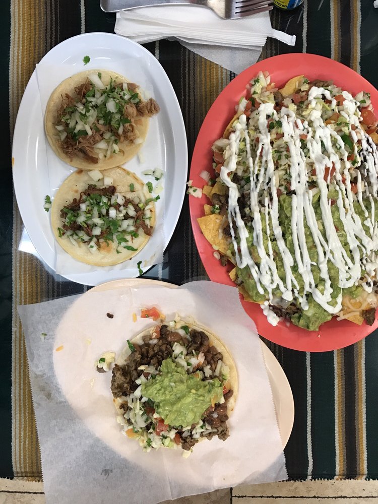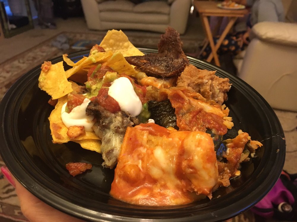 Chips topped with choice of meat, beans, pico de gallo, sour cream, cheese, and guacamole.